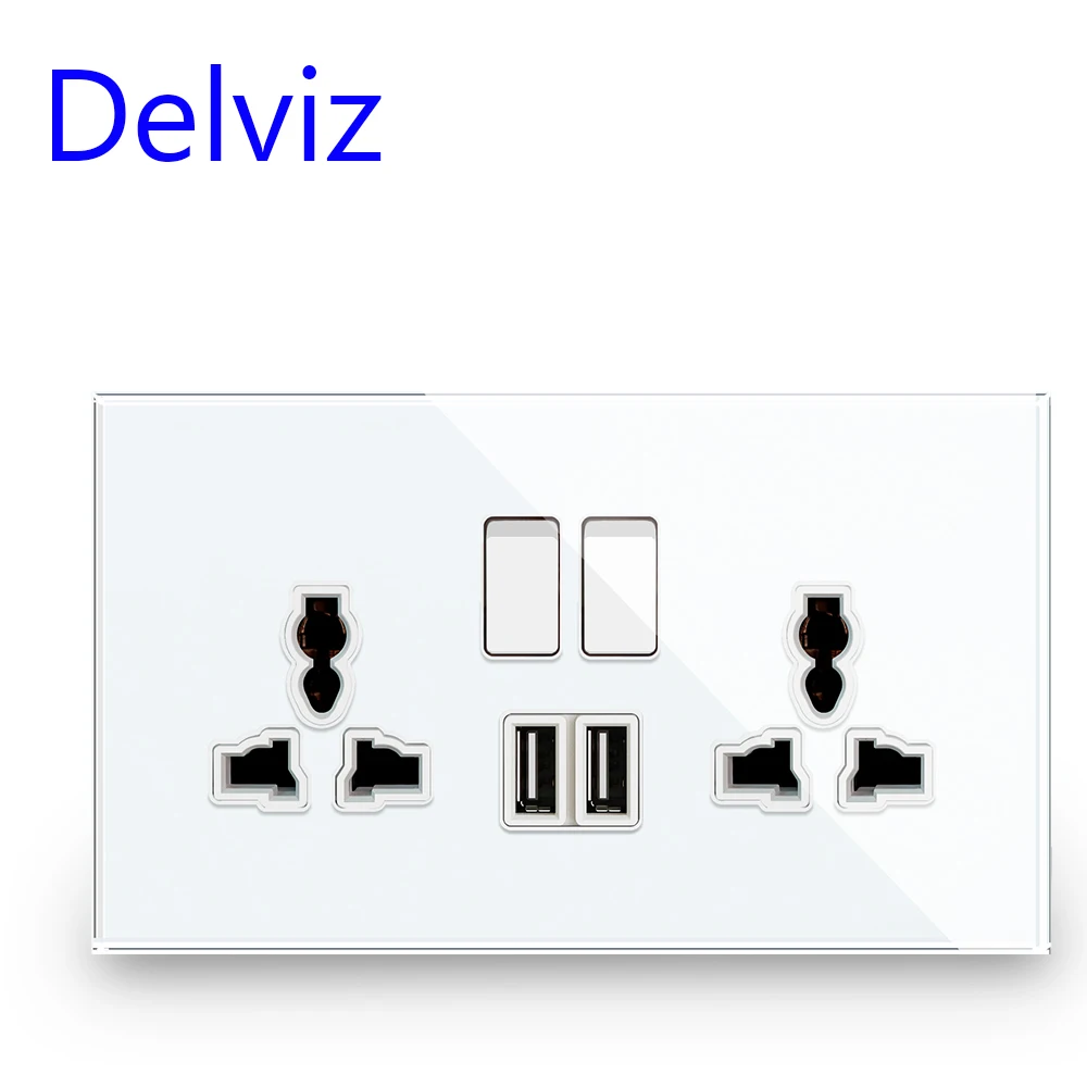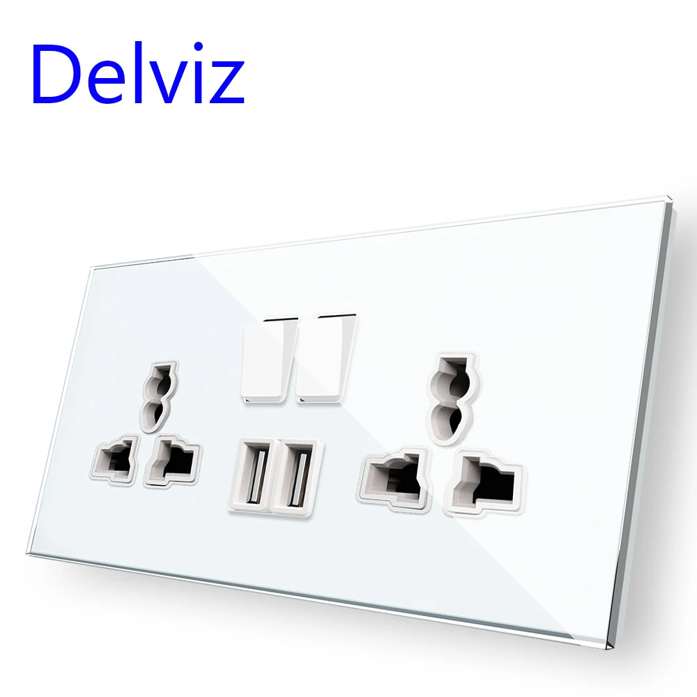 Best Price Delviz Tempered Glass Socket EU standard White Crystal Panel Switch controls double jacks 16A Universal Power Wall USB Socket
