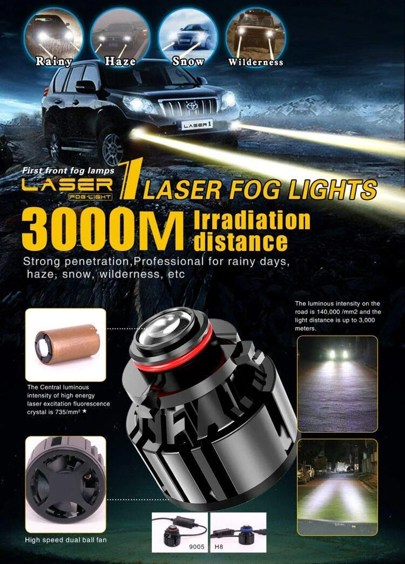 Home » Automobile , Best Price , Discount » Discount 1 Set L1 LED Laser Fog Headlight Lights Bulbs H8 H9 H11 9005 9006 26W 2600LM 3000M Laser Meter Irradiation Distance Ultra Bright