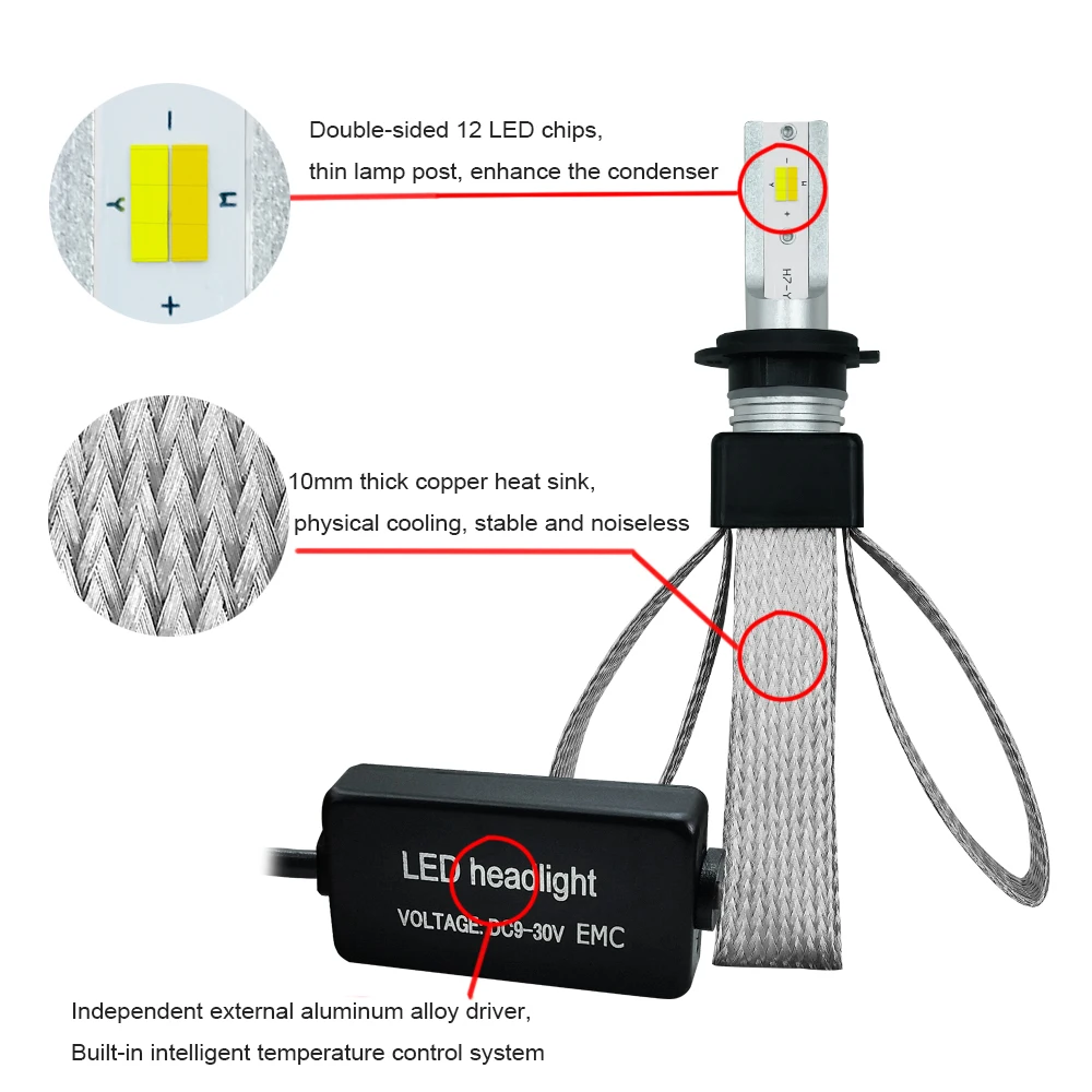 » Discount 2PCS Universal T9 Car Headlights LED H7 H4 H11 9005 9006 H1 80W 9600LM 3000K 4300K 6000K Auto Front Headlamp Bulb